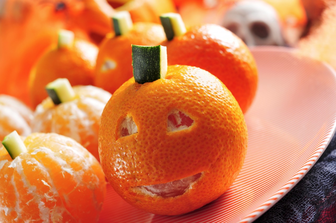 Hoy será una noche especial!!!! Siiii ya sé que no es Halloween aún, pero ya que íbamos a probar las mandarinas tan ricas que nos han enviado desde naranjasking.com supuse, que disfrazarlas de modo que colaboren con nuestras preparaciones de hoy, quedarían muy ricas.